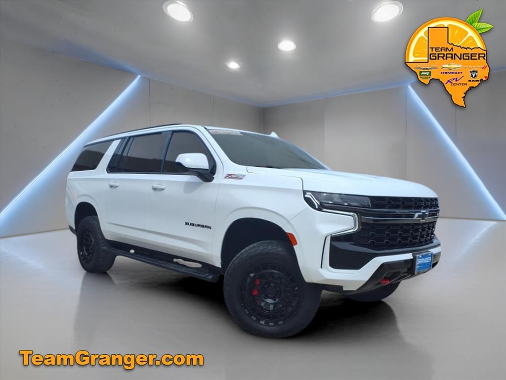 **GRANGER CERTIFIED**, **LIFTED**, **BIG WHEELS AND TIRES**, **NAVIGATION**, **HEATED SEATS**, **TOUCHSCREEN RADIO**, **BACKUP CAMERA**, **REMOTE START**, **LEATHER SEATS**, **LOCAL TRADE**, Z-71~~ LIFTED~~ HARD TO FIND~~NEW SUBURBAN TRADE~~.Summit White 2021 Chevrolet Suburban 4D Sport Utility Z71 10-Speed Automatic with Overdrive 4WDGranger Chevrolet is a full service Dealership proudly serving drivers near Southeast Texas, Lake Charles, and Sulphur Louisiana. We offer premium sales and financing solutions to help you craft and personalize your car buying experience. Whether you are in the market for something new or used, our diverse inventory lets you pick and choose from a plethora of affordable price points.Ask us about our SETX Exclusive Team Granger - DOWN PAYMENT ASSISTANCE PROGRAM!!!RESERVE this vehicle now with a deposit - WE SHIP VEHICLES AND TAKE TRADE-INS NATIONWIDE!!!License Plate Front Mounting Package, Preferred Equipment Group 2Z7 (10-Way Power Driver & Passenger Seat Adjusters, 1st & 2nd Row Color-Keyed Carpeted Floor Mats, 2 USB Data Ports, 2-Speed Active Electronic AutoTrac Transfer Case, Auto-Dimming Inside Rear-View Mirror, Black Tubular Assist Steps, Bose 9-Speaker Stereo Audio System Feature, Bright Front & Rear Door Sill Plates, Color-Keyed Carpeting Floor Covering, Driver & Front Outboard Passenger Airbags, Floor Console w/Storage Area, Front High-Approach Angle Fascia, Hands-Free Rear Power Programmable Liftgate, HD Radio, Heated Driver & Front Passenger Seats, Hill Descent Control, Infotainment Display, Leather-Wrapped Steering Wheel, LED Daytime Running Lamps, Memory Settings For Driver, Red Recovery Hooks, Remote Start, SiriusXM Radio w/360L, and Universal Home Remote), 1st, 2nd & 3rd Row All-Weather Floor Liners (LPO), 20" x 9" Machined Aluminum, 3.23 Rear Axle Ratio, 3rd row seats: split-bench, 4-Wheel Disc Brakes, 9 Speakers, ABS brakes, Air Conditioning, Alloy wheels, AM/FM radio: SiriusXM with 360L, Apple CarPlay/Android Auto, Auto High-Beam Headlights, Auto-Dimming Rear-View Mirror, Automatic Temperature Control, Brake assist, Bumpers: body-color, Compass, Delay-off headlights, Driver door bin, Driver vanity mirror, Dual front impact airbags, Dual front side impact airbags, Electronic Stability Control, Emergency communication system: OnStar and Chevrolet connected services capable, Four Wheel Independent Suspension, Front anti-roll bar, Front Bucket Seats, Front Center Armrest, Front Dual Zone A/C, Front reading lights, Fully Automatic Headlights, Garage Door Transmitter, Heated Door Mirrors, Heated Front Seats, Illuminated entry, Keyless Entry, Leather Seating Surfaces, Leather Steering Wheel, Low tire pressure warning, Memory Seat, Occupant sensing airbag, Outside temperature display, Overhead airbag, Overhead console, Panic alarm, Passenger door bin, Passenger vanity mirror, Power Door Mirrors, Power Driver Seat, Power Liftgate, Power passenger seat, Power steering, Power Windows, Premium audio system: Chevrolet Infotainment 3 Plus, Premium Smooth Ride Suspension, Radio: Chevrolet Infotainment 3 Plus System, Rain sensing wipers, Rear Air Conditioning, Rear anti-roll bar, Rear reading lights, Rear seat center armrest, Rear window defroster, Rear window wiper, Roof rack: rails only, Security System, Speed control, Speed-Sensing Steering, Split folding rear seat, Spoiler, Steering Wheel Mounted Audio Controls, Tachometer, Telescoping steering wheel, Tilt steering wheel, Traction control, Trip computer, Variably intermittent wipers, and Voltmeter.