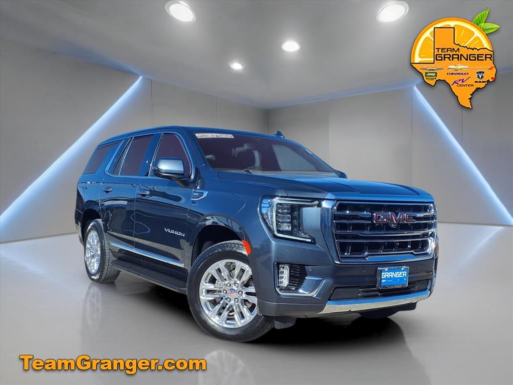 **GRANGER CERTIFIED**, **2ND ROW BUCKET SEATS**, **3RD ROW SEATS**, **BIG WHEELS AND TIRES**, **APPLE CARPLAY/ANDROID AUTO**, **NAVIGATION**, **HEATED SEATS**, **COOLED SEATS**, **TOUCHSCREEN RADIO**, **BACKUP CAMERA**, **REMOTE START**, **LEATHER SEATS**, FRESH TRADE.Dark Sky Metallic 2021 GMC Yukon 4D Sport Utility SLT 10-Speed Automatic with Overdrive RWDGranger Chevrolet is a full service Dealership proudly serving drivers near Southeast Texas, Lake Charles, and Sulphur Louisiana. We offer premium sales and financing solutions to help you craft and personalize your car buying experience. Whether you are in the market for something new or used, our diverse inventory lets you pick and choose from a plethora of affordable price points.Ask us about our SETX Exclusive Team Granger - DOWN PAYMENT ASSISTANCE PROGRAM!!!RESERVE this vehicle now with a deposit - WE SHIP VEHICLES AND TAKE TRADE-INS NATIONWIDE!!!License Plate Front Mounting Package, Preferred Equipment Group 4SA (12-Way Power Seat Adjusters, 2 Presets For Power Driver Seat, Bose 9-Speaker Stereo Audio System Feature, Bright Chrome Bodyside Moldings, Bright Front & Rear Door Sill Plates, Chrome Door Handles w/Body-Color Strip, Hands-Free Power Programmable Rear Liftgate, Heated & Ventilated Driver & Front Passenger Seats, Heated Driver & Front Passenger Seats, Inside Rear-View Auto-Dimming Mirror, Safety Alert Seat, and Universal Home Remote), Rear Media & Nav Package (HD Radio, Radio: AM/FM/SiriusXM w/Navigation, Rear Seat Media System, and SiriusXM w/360L), SLT Luxury Package (2 Presets For Outside Rearview Mirrors, 3rd Row 60/40 Power-Folding Split-Bench Seat, HD Surround Vision, Heated 2nd Row Outboard Position Seats, Heated Automatic Steering Wheel, Outside Heated Power-Adjustable Mirrors, Power Release 2nd Row 60/40 Split-Folding Bench Seat, Power Tilt & Telescopic Steering Column, and Rear Pedestrian Alert), SLT Premium Package (Dual-Pane Panoramic Power Sunroof), 3.23 Rear Axle Ratio, 3rd row seats: split-bench, 4-Wheel Disc Brakes, 9 Speakers, ABS brakes, Air Conditioning, Alloy wheels, AM/FM radio: SiriusXM with 360L, Apple CarPlay/Android Auto, Auto High-Beam Headlights, Auto-Dimming Rear-View Mirror, Automatic Emergency Braking, Automatic Temperature Control, Bodyside moldings, Brake assist, Bumpers: body-color, Compass, Delay-off headlights, Driver door bin, Driver vanity mirror, Dual front impact airbags, Dual front side impact airbags, Electronic Stability Control, Emergency communication system: OnStar and GMC connected services capable, Following Distance Indicator, Forward Collision Alert, Four Wheel Independent Suspension, Front & Rear Park Assist, Front anti-roll bar, Front Bucket Seats, Front Center Armrest, Front Dual Zone A/C, Front Fog Lights, Front Pedestrian Braking, Front reading lights, Fully Automatic Headlights, Garage Door Transmitter, Heated and Ventilated Front Seats, Heated Door Mirrors, Heated Front Seats, Illuminated entry, IntelliBeam Automatic High Beam On/Off, Keyless Entry, Lane Change Alert w/Side Blind Zone Alert, Lane Keep Assist, Leather Steering Wheel, Low tire pressure warning, Memory Seat, Occupant sensing airbag, Outside temperature display, Overhead airbag, Overhead console, Panic alarm, Passenger door bin, Passenger vanity mirror, Perforated Leather Seating Surfaces, Power Door Mirrors, Power Driver Seat, Power Liftgate, Power passenger seat, Power steering, Power Windows, Premium Smooth Ride Suspension, Radio: AM/FM/SiriusXM, Rain sensing wipers, Rear Air Conditioning, Rear anti-roll bar, Rear Cross Traffic Alert, Rear reading lights, Rear seat center armrest, Rear window defroster, Rear window wiper, Roof rack: rails only, Security System, Speed control, Speed-Sensing Steering, Split folding rear seat, Spoiler, Steering Wheel Mounted Audio Controls, Tachometer, Telescoping steering wheel, Tilt steering wheel, Traction control, Trip computer, Variably intermittent wipers, Voltmeter, Wheel Locks, and Wheels: 20