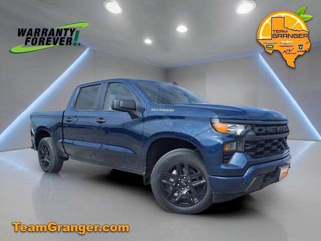 Certified.Northsky Blue Metallic 2022 2.7L Turbo Chevrolet Silverado 1500 4D Crew Cab Custom 8-Speed Automatic RWDCertification Program Details: Type your description hereGranger CDJR is a full service Dealership proudly serving drivers near Southeast Texas, Lake Charles, and Sulphur Louisiana. We offer premium sales and financing solutions to help you craft and personalize your car buying experience. Whether you are in the market for something new or used, our diverse inventory lets you pick and choose from a plethora of affordable price points.Ask us about our SETX Exclusive Team Granger - DOWN PAYMENT ASSISTANCE PROGRAM!!!RESERVE this vehicle now with a deposit - WE SHIP VEHICLES AND TAKE TRADE-INS NATIONWIDE!!!Custom Convenience Package (Electric Rear-Window Defogger, EZ Lift Power Lock & Release Tailgate, LED Cargo Area Lighting, and Remote Vehicle Starter System), Custom Value Package, High Capacity Suspension Package, Preferred Equipment Group 1CX (10-Way Power Driver Seat w/Lumbar, 120-Volt Bed Mounted Power Outlet, 120-Volt Instrument Panel Power Outlet, 3.5" Monochromatic Display Driver Info Center, Bluetooth® For Phone, Chevrolet Connected Access Capable, Color-Keyed Carpeting Floor Covering, Compass, Deep-Tinted Glass, Dual Rear USB Ports (Charge Only), Electrical Steering Column Lock, Electronic Cruise Control, Front Frame-Mounted Black Recovery Hooks, Front Rubberized Vinyl Floor Mats, HD Rear Vision Camera, Manual Tilt Wheel Steering Column, OnStar & Chevrolet Connected Services Capable, Power Front Windows w/Driver Express Up/Down, Power Front Windows w/Passenger Express Down, Power Rear Windows w/Express Down, Rear 60/40 Folding Bench Seat (Folds Up), Rear Rubberized-Vinyl Floor Mats, Remote Keyless Entry, SiriusXM Radio, Standard Tailgate, Theft Deterrent System (Unauthorized Entry), Wi-Fi Hot Spot Capable, and Wireless Phone Projection), Trailering Package (Hitch Guidance), 3.42 Rear Axle Ratio, 4-Wheel Disc Brakes, 40/20/40 Front Split-Bench Seat, 6 Speakers, 6-Speaker Audio System, ABS brakes, Air Conditioning, Alloy wheels, AM/FM radio: SiriusXM, Apple CarPlay/Android Auto, Auto High-beam Headlights, Automatic Emergency Braking, Brake assist, Bumpers: body-color, Cloth Seat Trim, Delay-off headlights, Driver door bin, Driver vanity mirror, Dual front impact airbags, Dual front side impact airbags, Electronic Stability Control, Following Distance Indicator, Forward Collision Alert, Front anti-roll bar, Front Center Armrest w/Storage, Front License Plate Kit, Front Pedestrian Braking, Front reading lights, Front wheel independent suspension, Fully automatic headlights, Heated door mirrors, Illuminated entry, IntelliBeam Automatic High Beam On/Off, Lane Keep Assist w/Lane Departure Warning, Low tire pressure warning, Not Equipped w/Rear USB Ports, Not Equipped w/Steering Column Lock, Occupant sensing airbag, Outside temperature display, Overhead airbag, Overhead console, Panic alarm, Passenger door bin, Passenger vanity mirror, Power door mirrors, Power driver seat, Power steering, Power windows, Premium audio system: Chevrolet Infotainment 3, Radio data system, Radio: Chevrolet Infotainment 3 System, Rear reading lights, Rear step bumper, Rear window defroster, Remote keyless entry, Security system, Speed control, Speed-sensing steering, Split folding rear seat, Tachometer, Tilt steering wheel, Traction control, Trip computer, Variably intermittent wipers, Voltmeter, Wheels: 20" x 9" Bright Silver Painted Aluminum, and Wheels: 20" x 9" High Gloss Black Painted Alum.