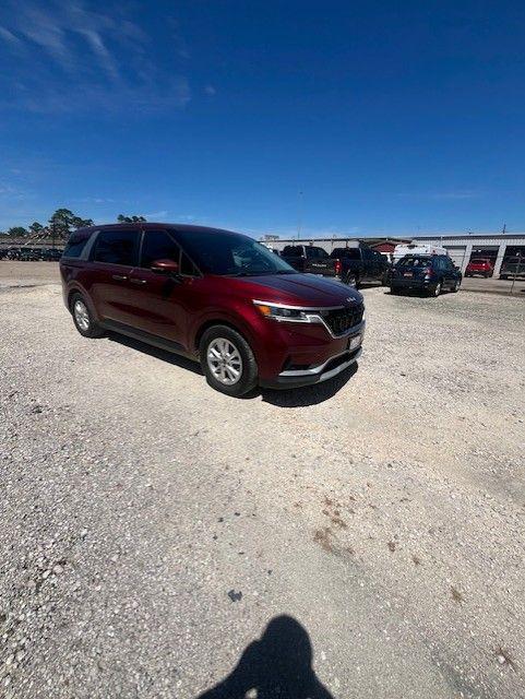 Certified.Flare Red 2022 V6 Kia Carnival 4D Passenger Van LXS 8-Speed Automatic FWDCertification Program Details: Please ask Dealer for Details on our 3 Month/3,000 Mile Limited Warranty.Granger CDJR is a full service Dealership proudly serving drivers near Southeast Texas, Lake Charles, and Sulphur Louisiana. We offer premium sales and financing solutions to help you craft and personalize your car buying experience. Whether you are in the market for something new or used, our diverse inventory lets you pick and choose from a plethora of affordable price points.Ask us about our SETX Exclusive Team Granger - DOWN PAYMENT ASSISTANCE PROGRAM!!!RESERVE this vehicle now with a deposit - WE SHIP VEHICLES AND TAKE TRADE-INS NATIONWIDE!!!2-Way Power Driver's Lumbar Support, 3.51 Axle Ratio, 3rd row seats: split-bench, 4-Wheel Disc Brakes, 6 Speakers, 8 Way Power Driver's Seat, ABS brakes, Air Conditioning, Alloy wheels, AM/FM radio, Apple CarPlay & Android Auto, Artificial Leather Seat Trim, Auto High-beam Headlights, Brake assist, Bumpers: body-color, Carpeted Floor Mats (8-Passenger), Delay-off headlights, Driver door bin, Driver vanity mirror, Dual front impact airbags, Dual front side impact airbags, Electronic Stability Control, Four wheel independent suspension, Front anti-roll bar, Front Bucket Seats, Front Center Armrest, Front reading lights, Fully automatic headlights, Heated door mirrors, Heated Front Bucket Seats, Heated front seats, Illuminated entry, Knee airbag, Leather Shift Knob, Leather steering wheel, Low tire pressure warning, Occupant sensing airbag, Outside temperature display, Overhead airbag, Overhead console, Panic alarm, Passenger door bin, Passenger vanity mirror, Power door mirrors, Power driver seat, Power steering, Power windows, Radio: AM/FM Audio System, Rear air conditioning, Rear anti-roll bar, Rear reading lights, Rear window defroster, Rear window wiper, Reclining 3rd row seat, Remote keyless entry, Security system, Speed control, Speed-sensing steering, Split folding rear seat, Spoiler, Steering wheel mounted audio controls, Tachometer, Telescoping steering wheel, Tilt steering wheel, Traction control, Trip computer, Turn signal indicator mirrors, Variably intermittent wipers, and Wheels: 6.5J x 17"" Clear Silver Painted Alloy.